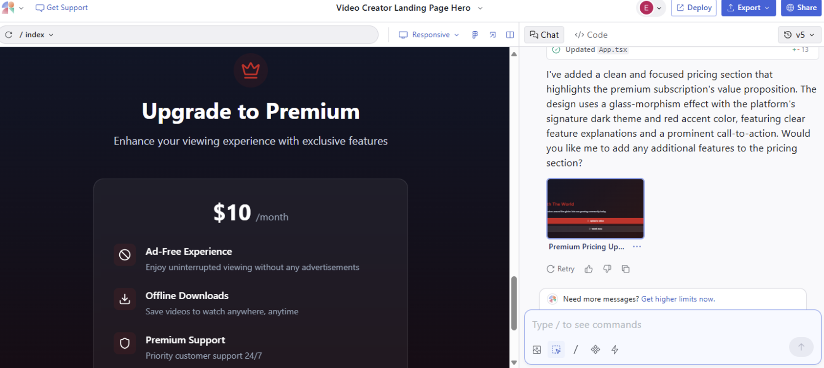 Once you've established the hero section, you can add more sections like pricing or a footer. The AI will maintain the established theme and design consistency.